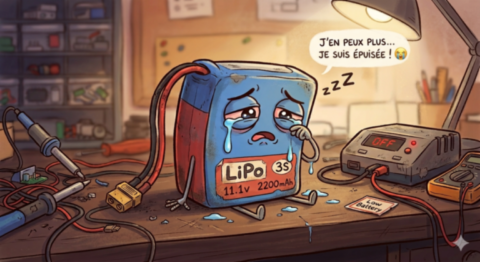Le taux de décharge (C) : Vérifiez que votre batterie a un taux de décharge suffisant (ex: 35C, 50C) pour votre moteur. Si elle revient très chaude après un vol, c'est que son taux de "C" est trop faible pour votre motorisation.
