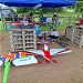 Nous emportons, visseuse sur batterie, assortiment de vis genre VBA, marteau, pied de biche, pelle et pioche (pour remettre le sol à niveau), Batterie autonome (donc prévoir vos chargeurs)