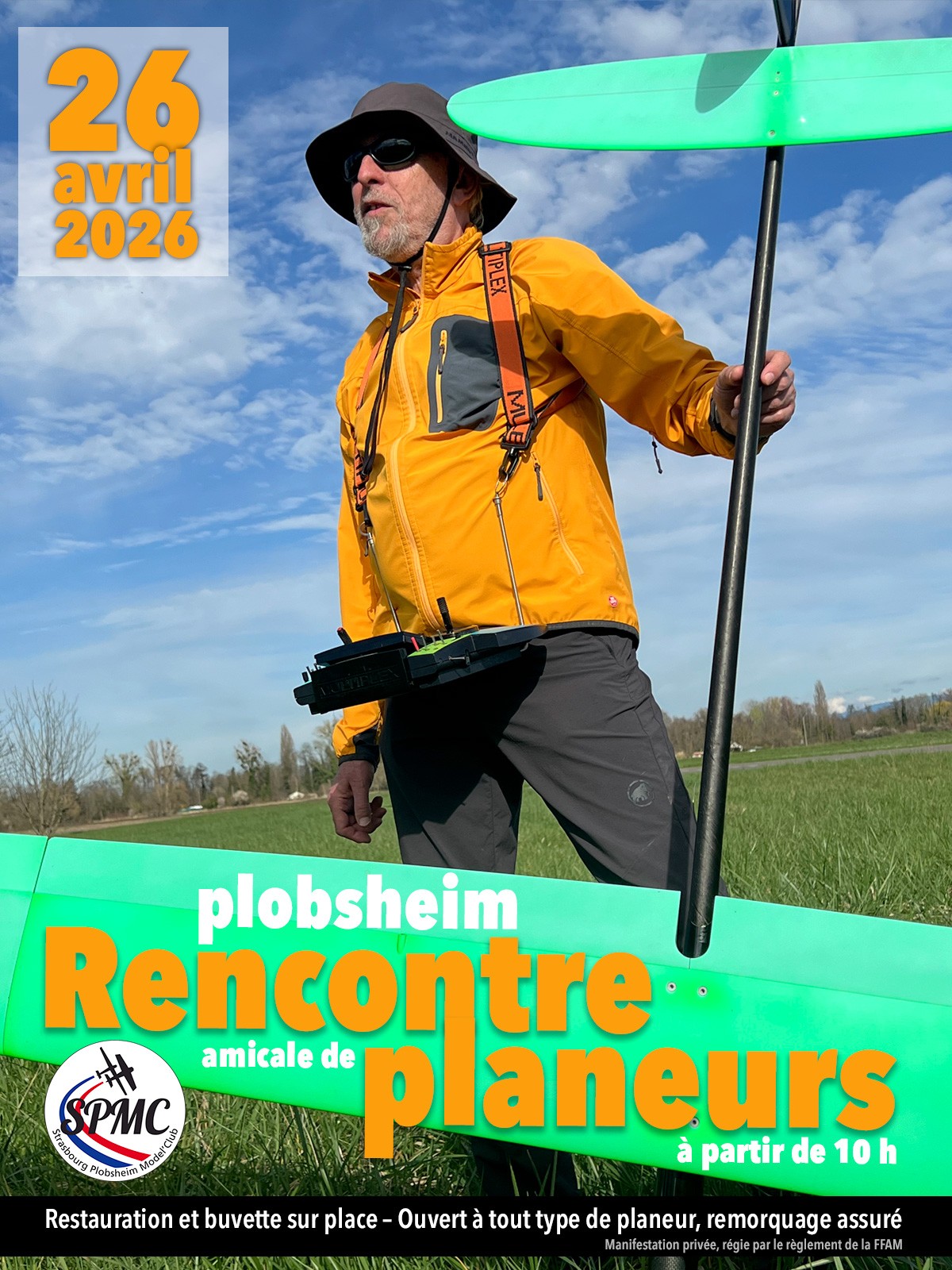 Le club S.P.M.C. organise le dimanche 26 avril 2026 sa rencontre amicale annuelle de planeurs. Tous types de planeur sera le bienvenue, du plus grand au plus petit, du plus récent au plus ancien ou du motorisé au non-motorisé. Des remorqueurs seront mis à disposition pour monter vos machines en l'air. Cette manifestation démarrera à 10 h et se prolongera toute la journée.